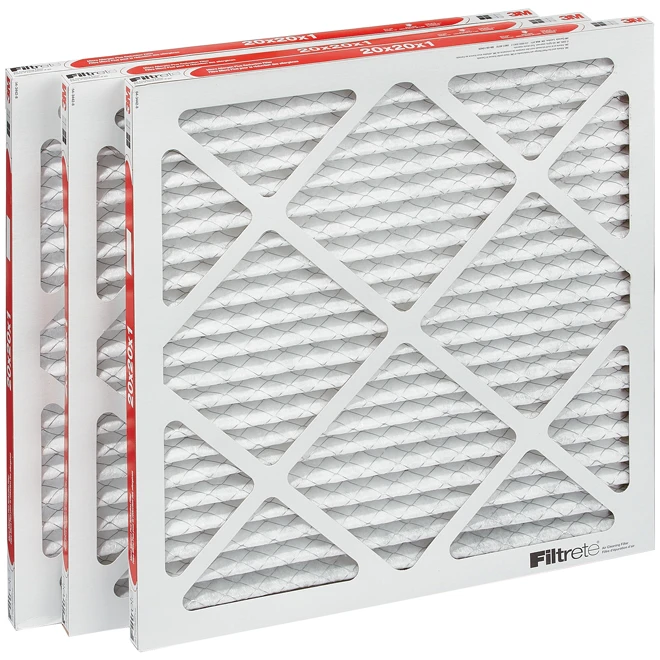 Enjoy quality aeration using this three-pack 3M Filtrete furnace air filter. Manufactured from stiff polyester, it holds up well in high velocity equipment. Its electrostatic technology creates a charge that attracts microscopic allergens. Designed with an 11 Minimum Efficiency Reporting Value (MERV) rating, its fibers captures particulate matter like pollen, pet dander, and mould spores. Wash its tight mesh material easily to facilitate reuse. Crafted with a strong net fabric, this replaceable residential air filter lasts for three months. Its slim structure fits securely in the furnace access panel for a firm set up. With a 1000 Microparticle Performance Rating (MPR), it traps particles between 0.3 and 1 micron in size. The 20 in W x 20 in L micro-allergen reduction filter has pleats that boost particulate capture.