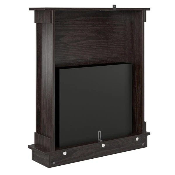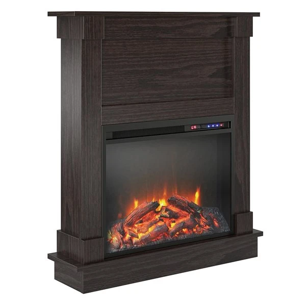 Enjoy the warm and inviting feel of a fire at the push of a button with Ameriwood Home Ellsworth fireplace with mantel. Adorn with your favourite decor or your beloved family photos atop the mantel and give your room a pleasant modern look with the deep espresso finish.