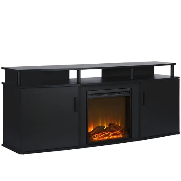Create a cozy space in your home with the Ameriwood Home Carson electric fireplace TV console. The black finish gives this TV console a modern aesthetic sure to complement any room’s decor. The stand is constructed of laminated particle board with metal accents. The 18-in firebox insert features an LED light source boasting up to 50,000 hours of life.