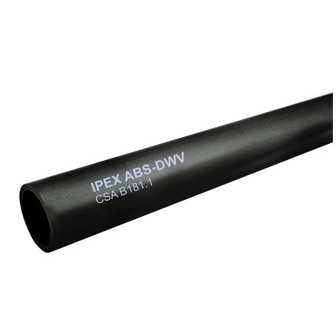 Use this Ipex ABS pipe for your drain-waste-vent (DWV) systems. Its size provides a 3 in dia x 6 ft L option to pipe runs. The acrylonitrile butadiene styrene material in this ABS DWV pipe allows it to withstand exposure to household chemicals and moisture. It speeds up installation with its workability. With the ABS composition of this plumbing accessory, it reacts well to solvent cement.