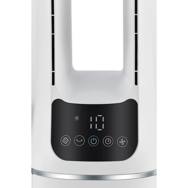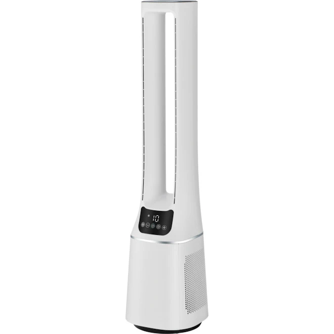 The 3 wind modes of this Midea fan are realistic and simulate a slow, slumberous or normal wind, with intelligent temperature control. Its oscillating function brings a wider range or airflow direction, while its H13 HEPA purifying filter ensures fresher air throughout your home. Features 10 speed settings and a multifunctional remote.