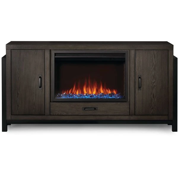 - Use this electric fireplace for your entertainment centre with a built-in electronic media compartment and wire management system