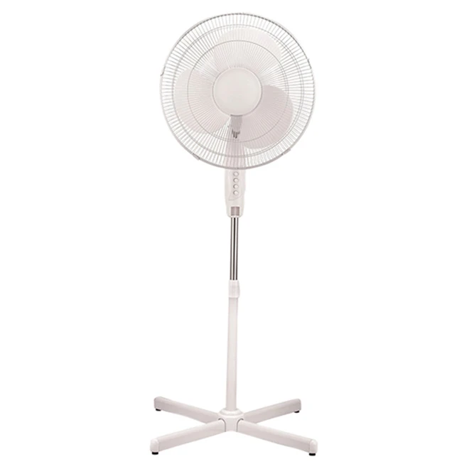 This Facto pedestal fan is made of white-coloured plastic and metal. With a diameter of 16″, it offers three different speeds, allowing you to choose the power level that best suits your needs. In addition, this fan is a must have when it comes to escaping oppressive heat or creating a better air circulation in the house, not to mention its easy assembly, adjustable vertical tilt, adjustable height and safety grille. This product is backed by a 1-year limited warranty.