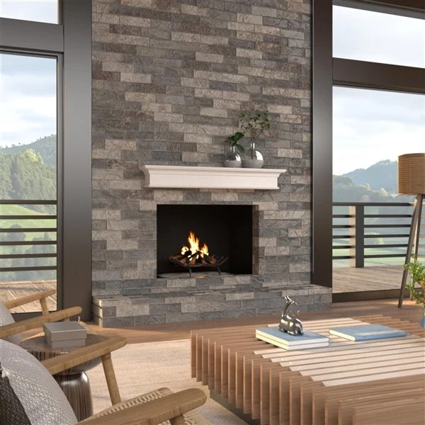 We do not treat the mantel as trim or moulding but as a beautiful piece of furniture that is the focal point of the entire room. Furniture is arranged around it, precious treasures are displayed on it, it provides balance and stability to the entire room. Pearl Mantels features fine furniture quality, stunning details and classic designs that will enhance any decor. Created from grade A medium-density fibreboard also known as MDF. It is commonly used for furniture, cabinetry, shelving and decorative mouldings. The shelf ships in 1 piece. Mitered hanger board assembly included for easy installation. Shelf length: 60-in shelf depth: 9-in bottom base length: 55.875-in bottom base depth: 6.875-in overall height: 8-in, weight 35 lb. Look for the pearl inlay that graces the right-hand side of the shelf as proof that you have received an authentic Pearl Mantel. Paint grade only. If you would like to change the colour, lightly sand and add your own touch.